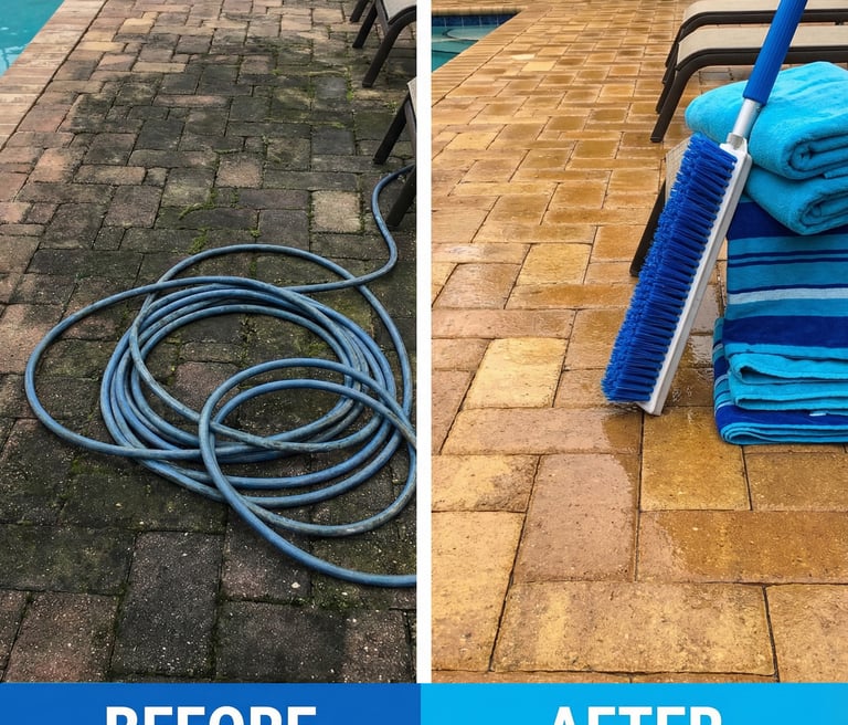 Decks and patios refreshed by removing discoloration and buildup, making outdoor spaces inviting again for family and friends.
